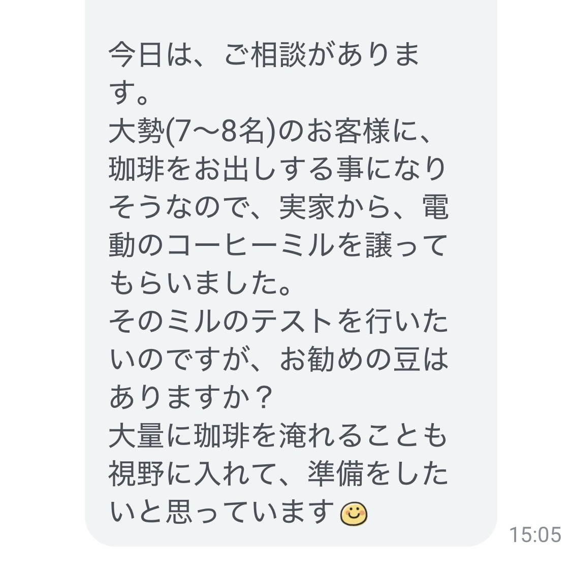 月に数度、豆購入のお客さんから
