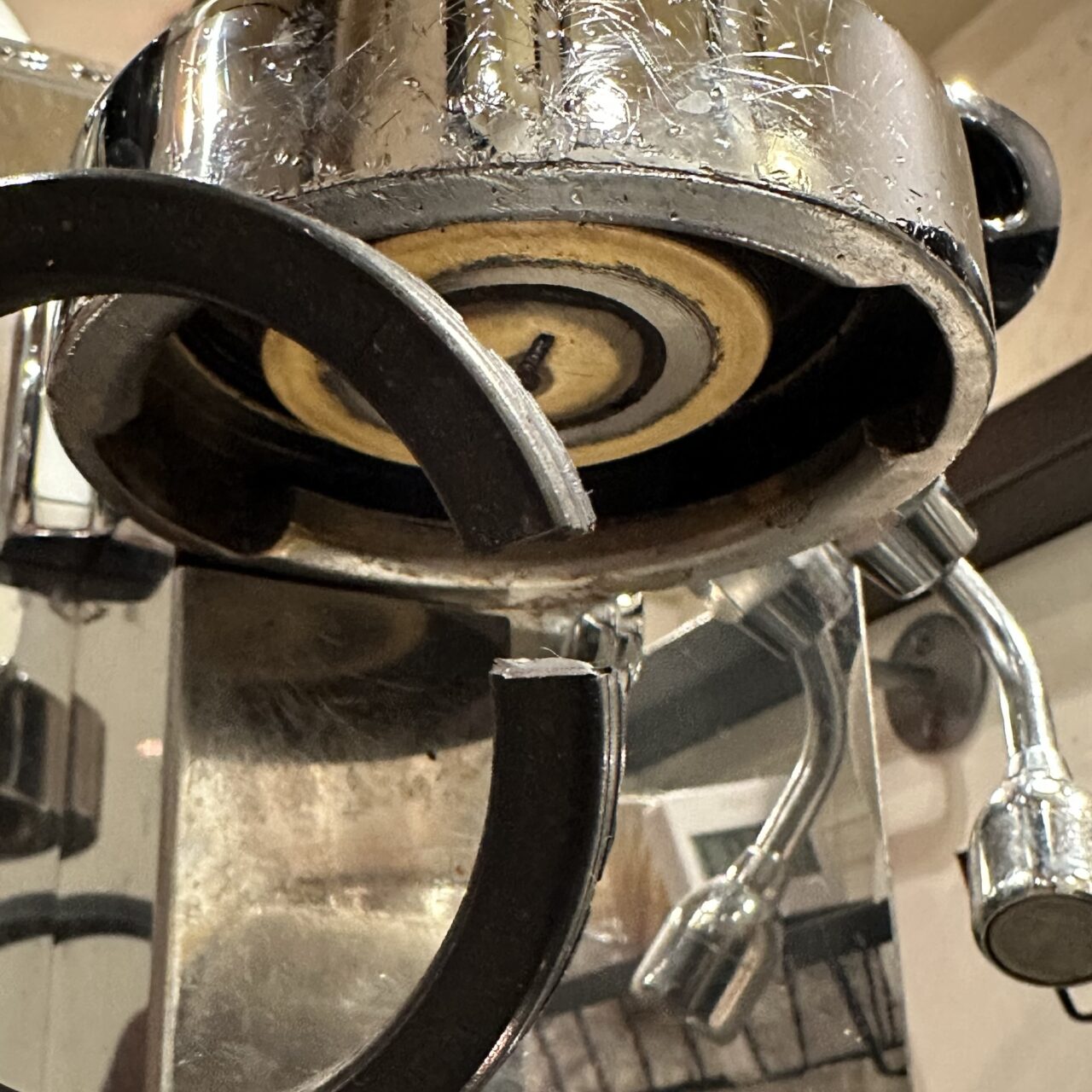 エスプレッソマシンの 破損していたガスケット納品 こんな感じで取り付けます 抽出液漏れ防止。そんな感じ それにしても、寒波強く 店内のストーブ灯しても 吸気の関係で入口少し開けるから 店内、寒むっ🥶 -